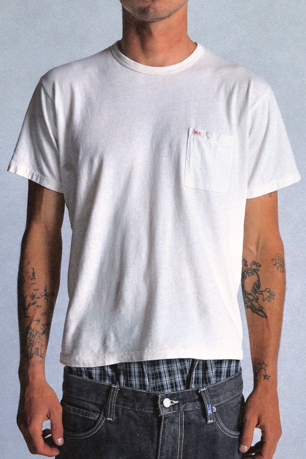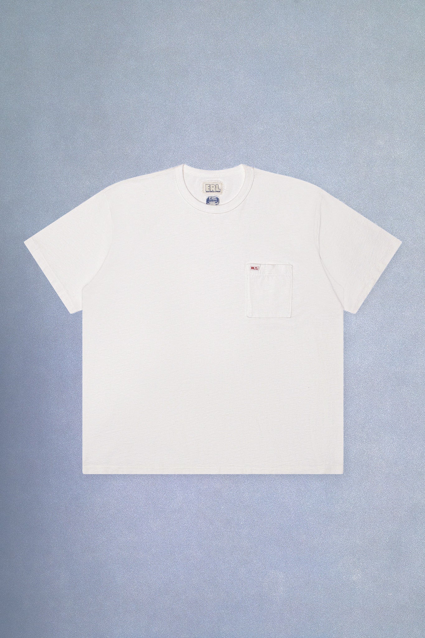 White ERL tshirt in super soft cotton. Relaxed fit. Front pocket with ERL patch. Soft hand aged vintage feel.