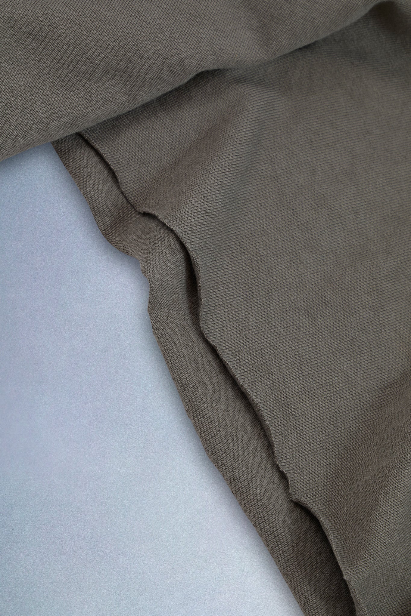 A hand-dyed, sun-faded green long-sleeve tee featuring tank graphic and "super nature" typography. Unfinished raw hem. Washed for a vintage feel, finished with contrast stitching that traces its timeworn character.