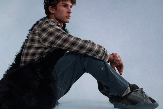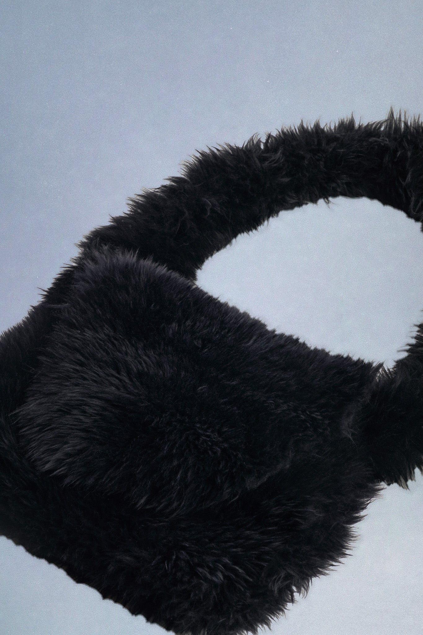 Hand dyed shearling leather messenger bag in black. Ethically sourced and handcrafted in California. Front flap closure. Cross body strap. Signature rubber tag. Packaged in a branded ERL organic cotton dust bag. Made in California, USA.