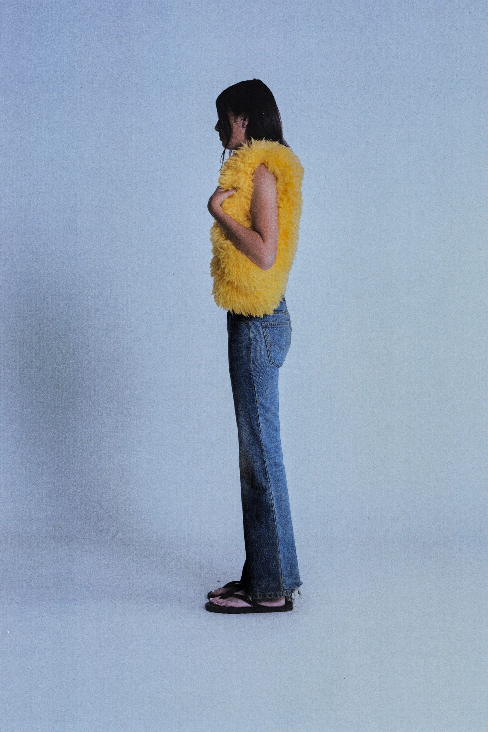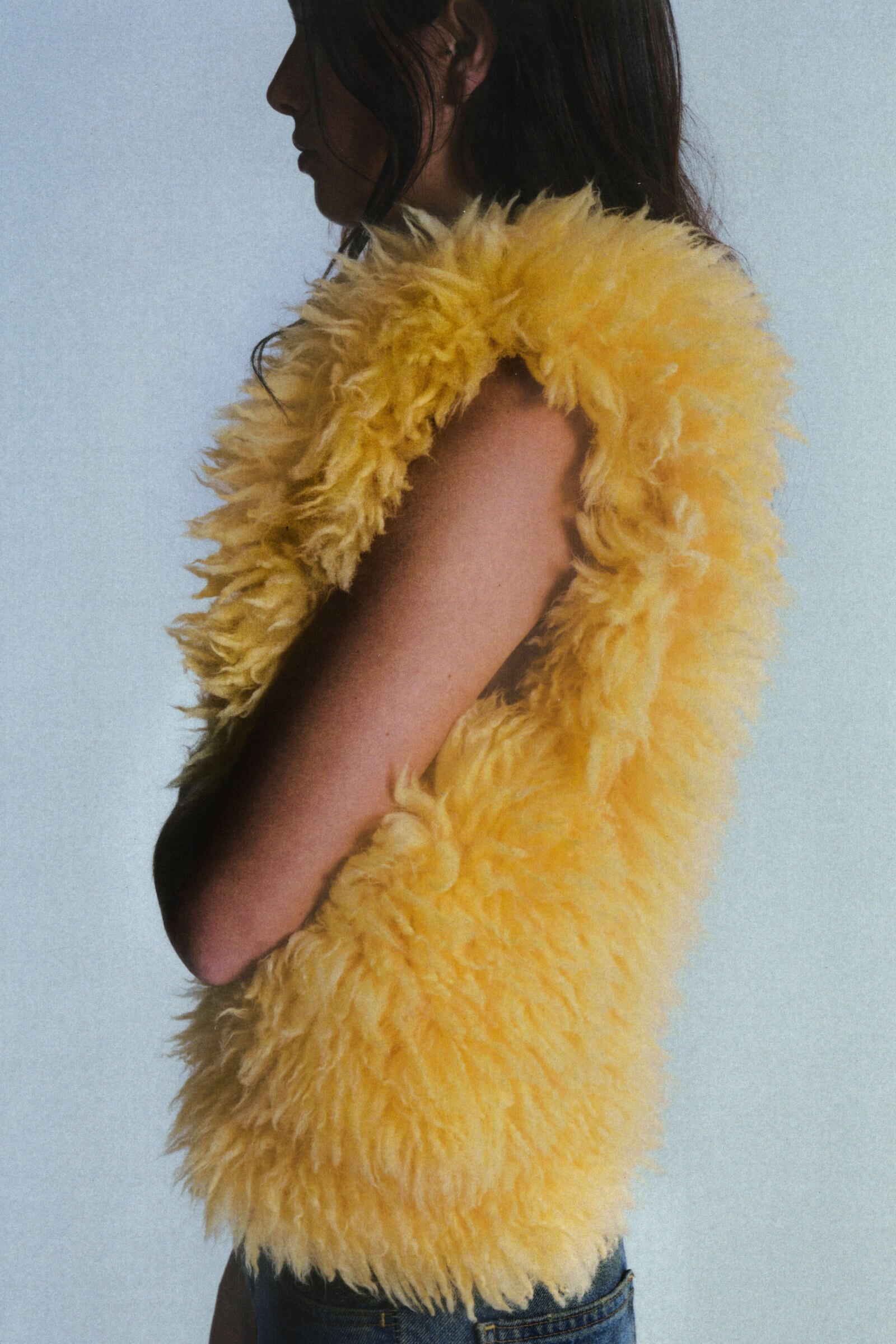 Hand aged shearling leather mini bag. Ethically sourced and handcrafted in California. Front flap closure. Shoulder strap. Signature rubber luggage tag. Packaged in a branded ERL organic cotton reusable tote.